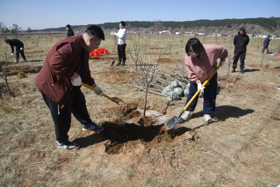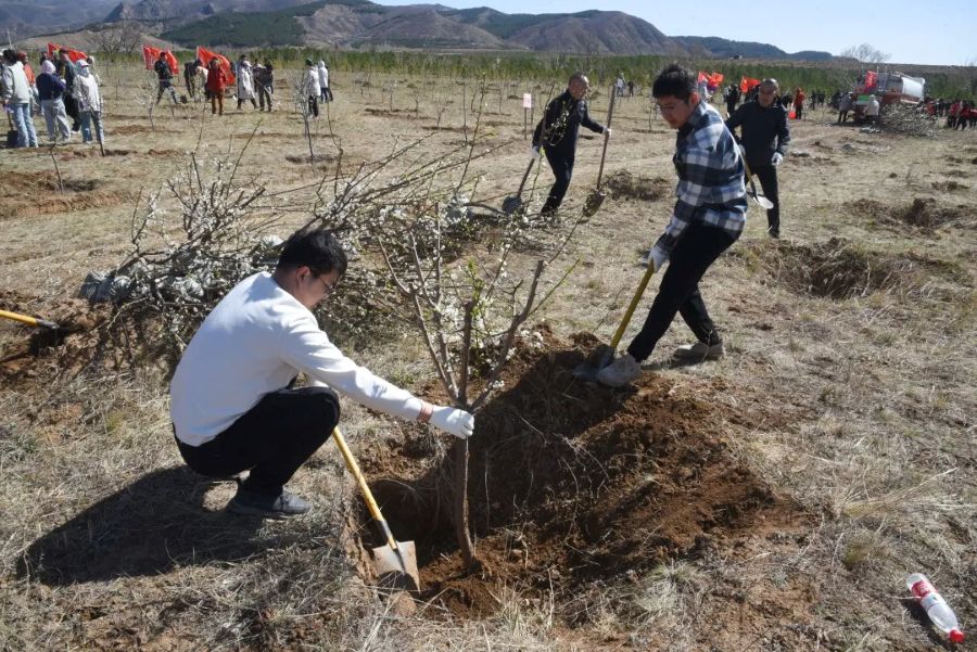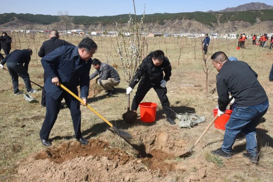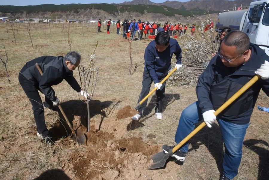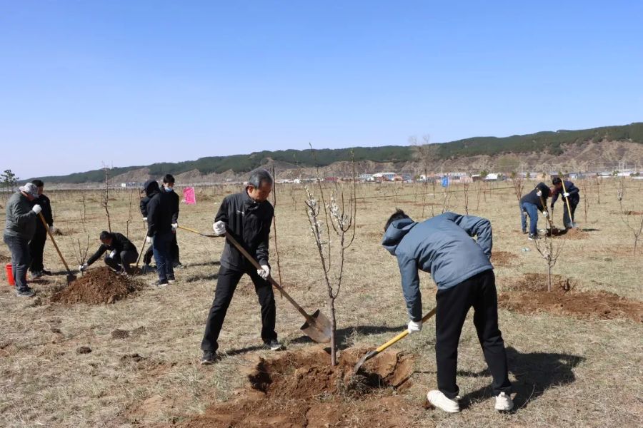 义务植树活动现场一派热火朝天,广大干部员工干劲十足、热情高涨,挥锹铲土、扶苗填坑、培土围堰、提水浇灌,相互配合有条不紊地完成每一个步骤。在大家的辛勤劳动下,一株株树苗“安家落户”,为春日增添了一道亮丽风景。