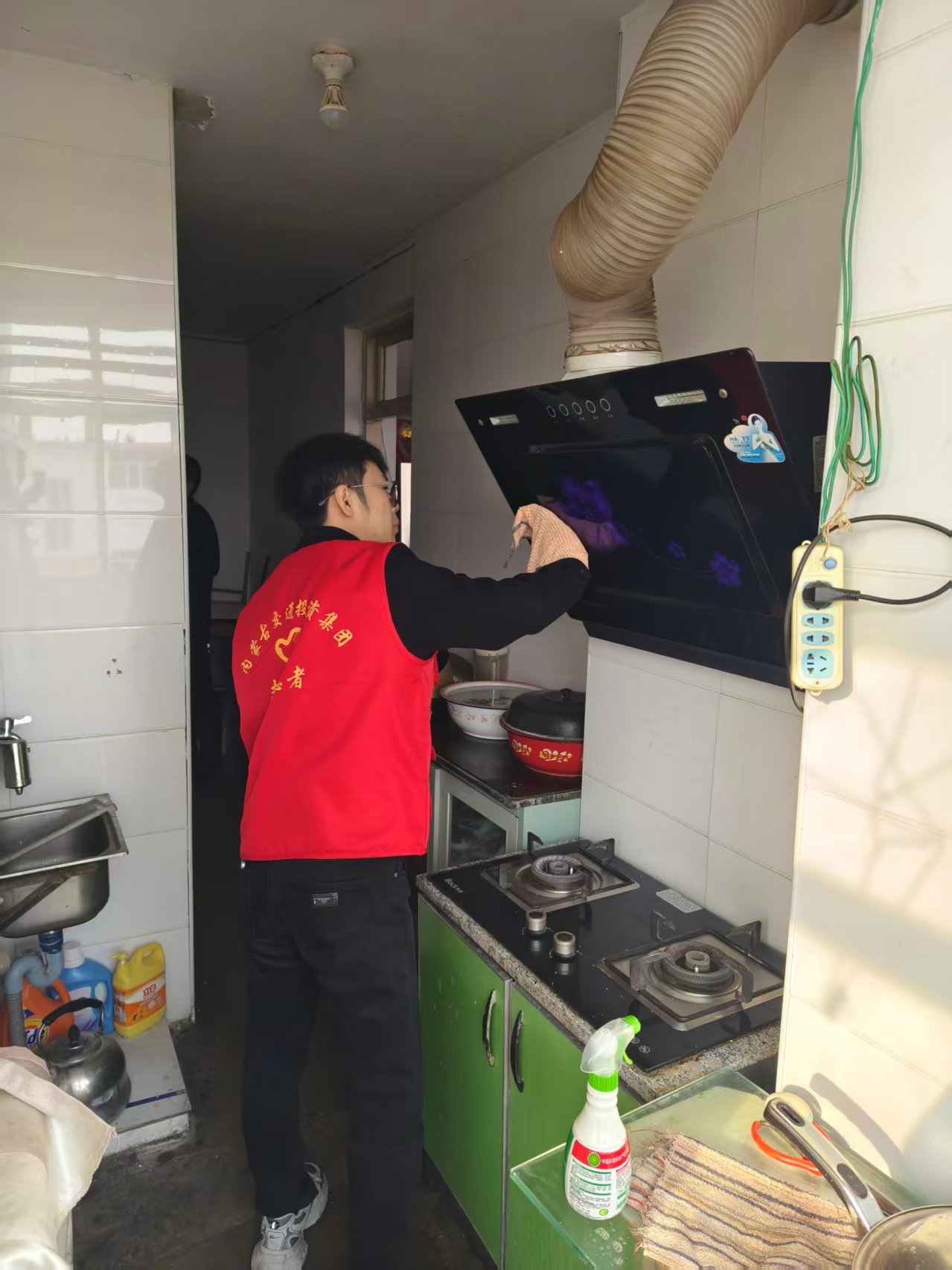 志愿者们带着慰问品走进空巢老人家中,与老人拉家常、问冷暖,关切询问他们的身体健康状况、日常生活情况等。随后,志愿者们戴上手套、拿起抹布开始行动,扫地、拖地、擦玻璃......大家各自分工,干得热火朝天、暖意融融。经过一个多小时的忙碌,整个屋子焕然一新。