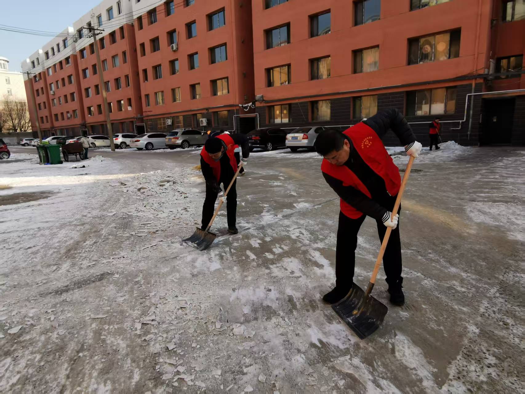 严寒中,志愿者们热情高涨,干劲十足。大家分工合作、配合默契,铲雪声不绝于耳,经过数小时的连续奋战,社区道路上积雪清扫干净,为广大居民群众出行创造了便利条件。