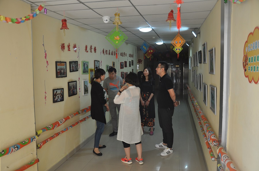 听取工作人员介绍福利院情况。小张/摄