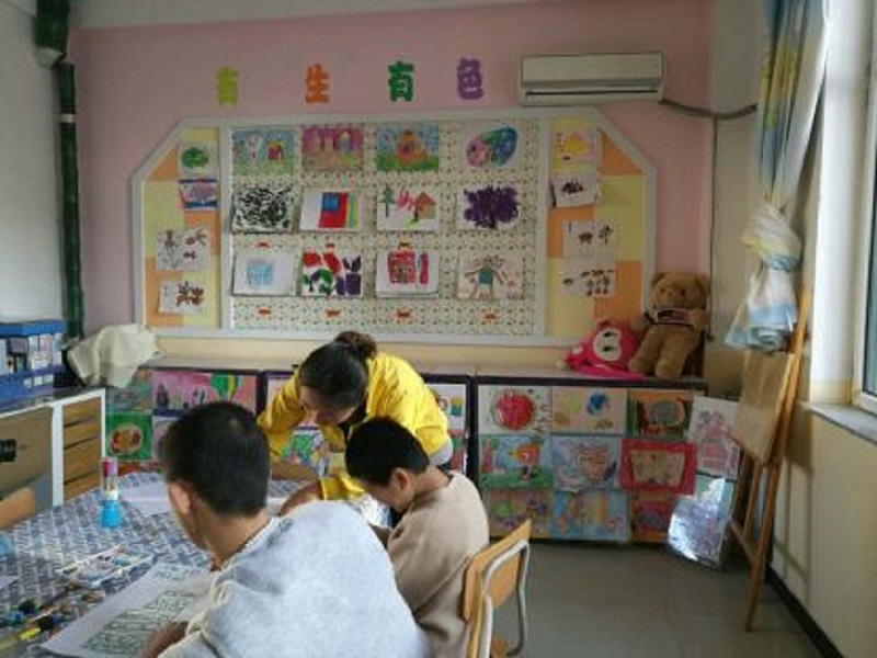 孩子们在活动室画画。小张/摄