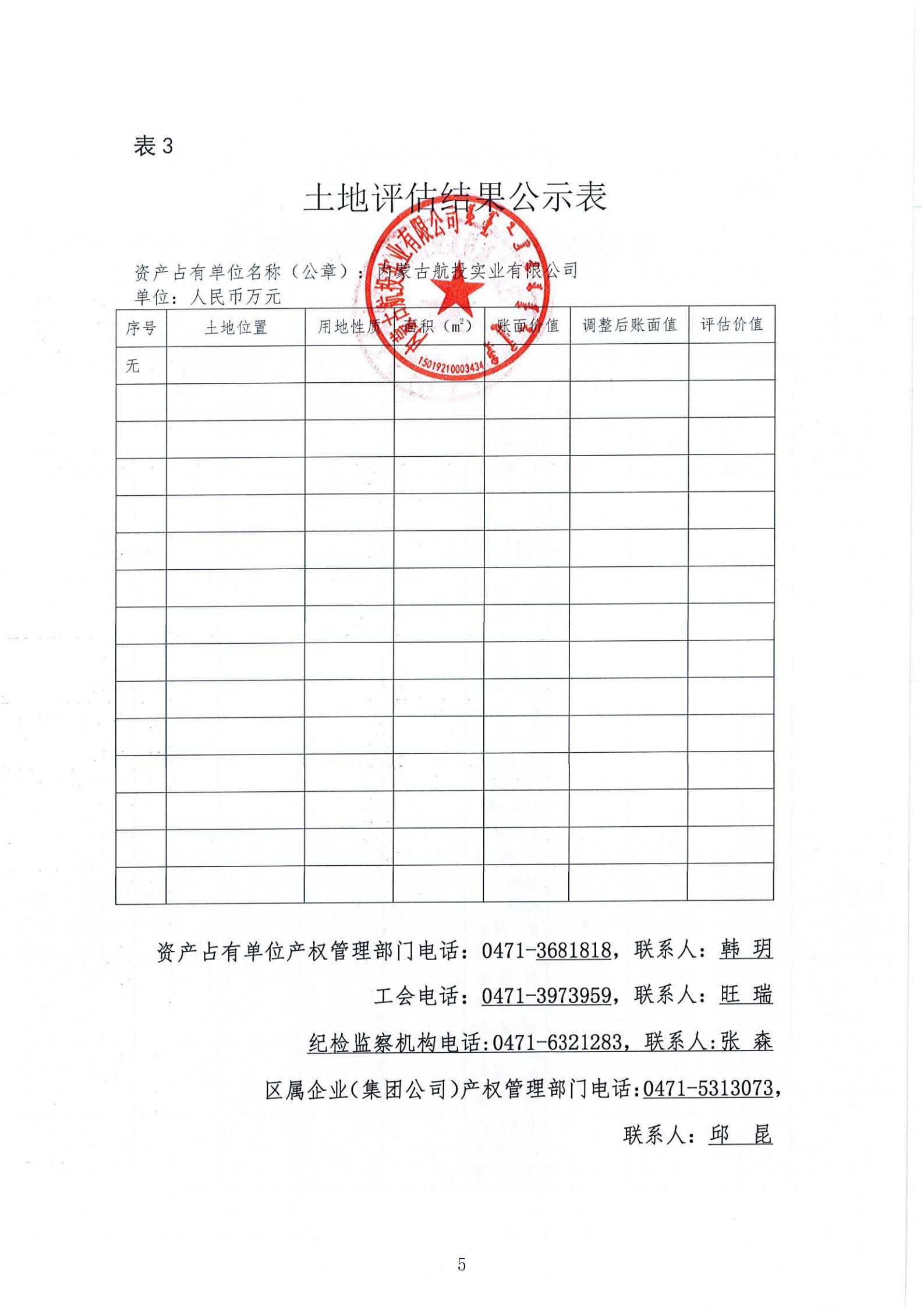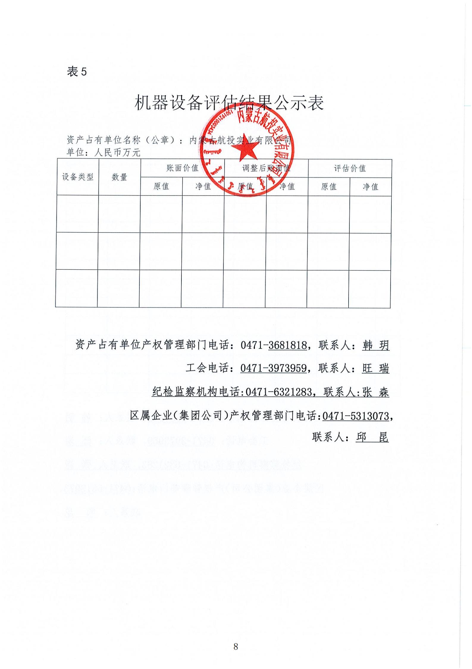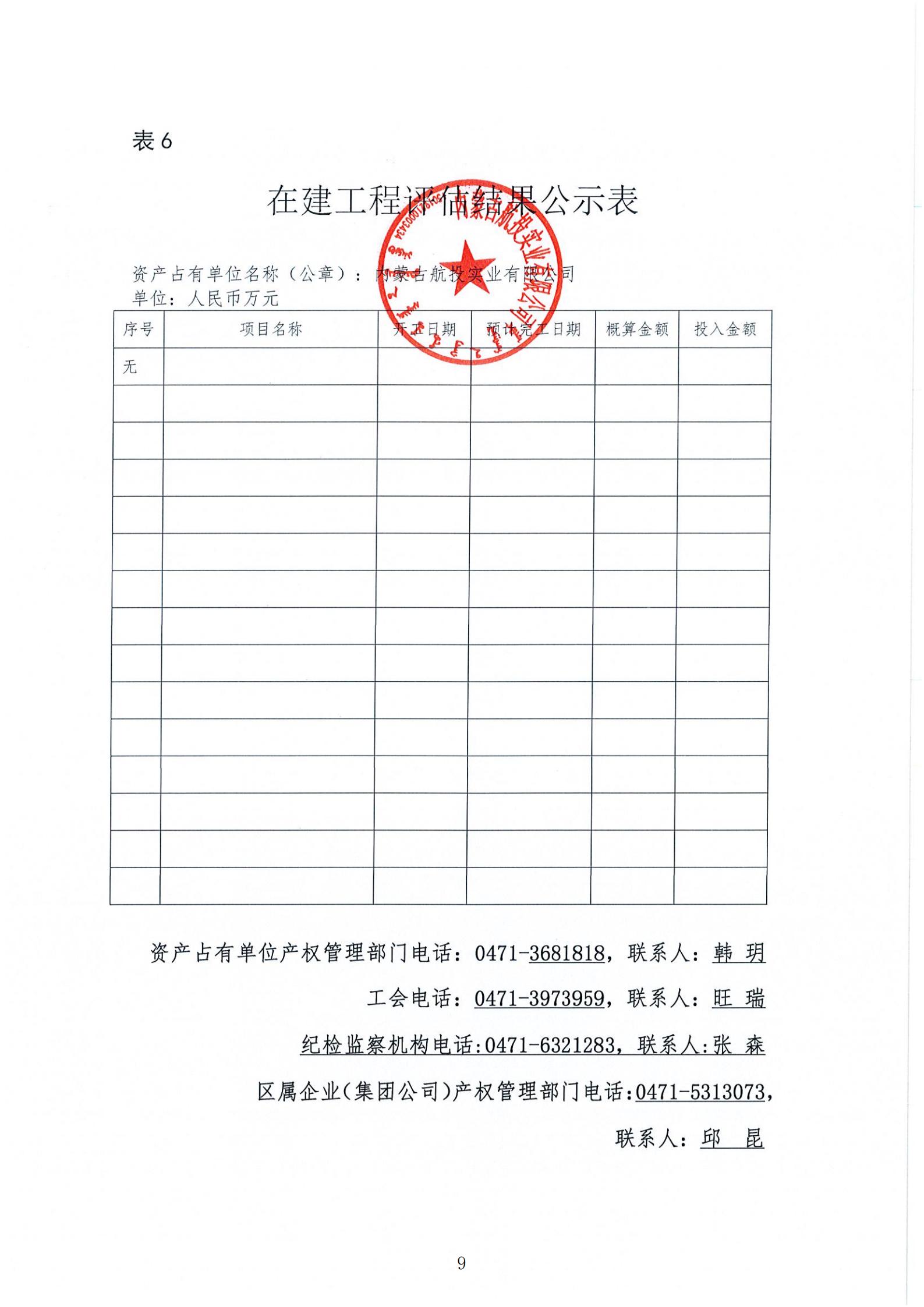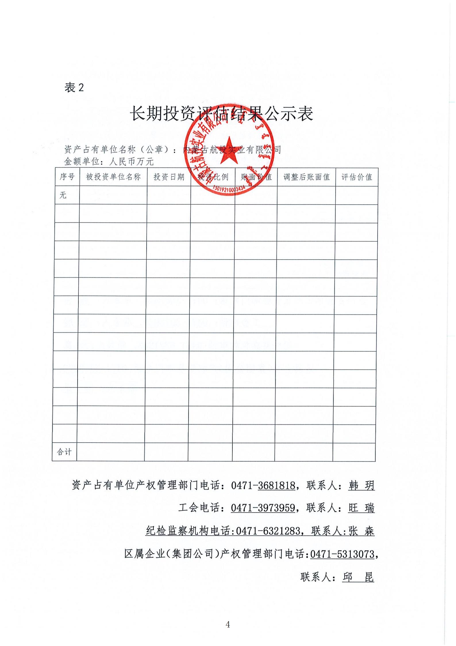 根据《内蒙古自治区区属企业国有资产评估项目公示办法《内蒙古交通投资(集团)有限责任公司国有资产评估 管理办法(试行)》相关规定,为依法合规开展我公司国有 资产评估行为,建立有效监督机制,做到国有资产评估管理,工作规则公开、过程公开、结果公开,依法保障资产评估项 目相关各方知情权和监督权,现将内蒙古航投实业有限公司对其乌兰布统机场飞行度假区拟出租部分房地产2025年年租金市场价值进行资产评 估项目结果进行公示,公示内容详见附表。公示有效期:2025年5月7日-5月12日。