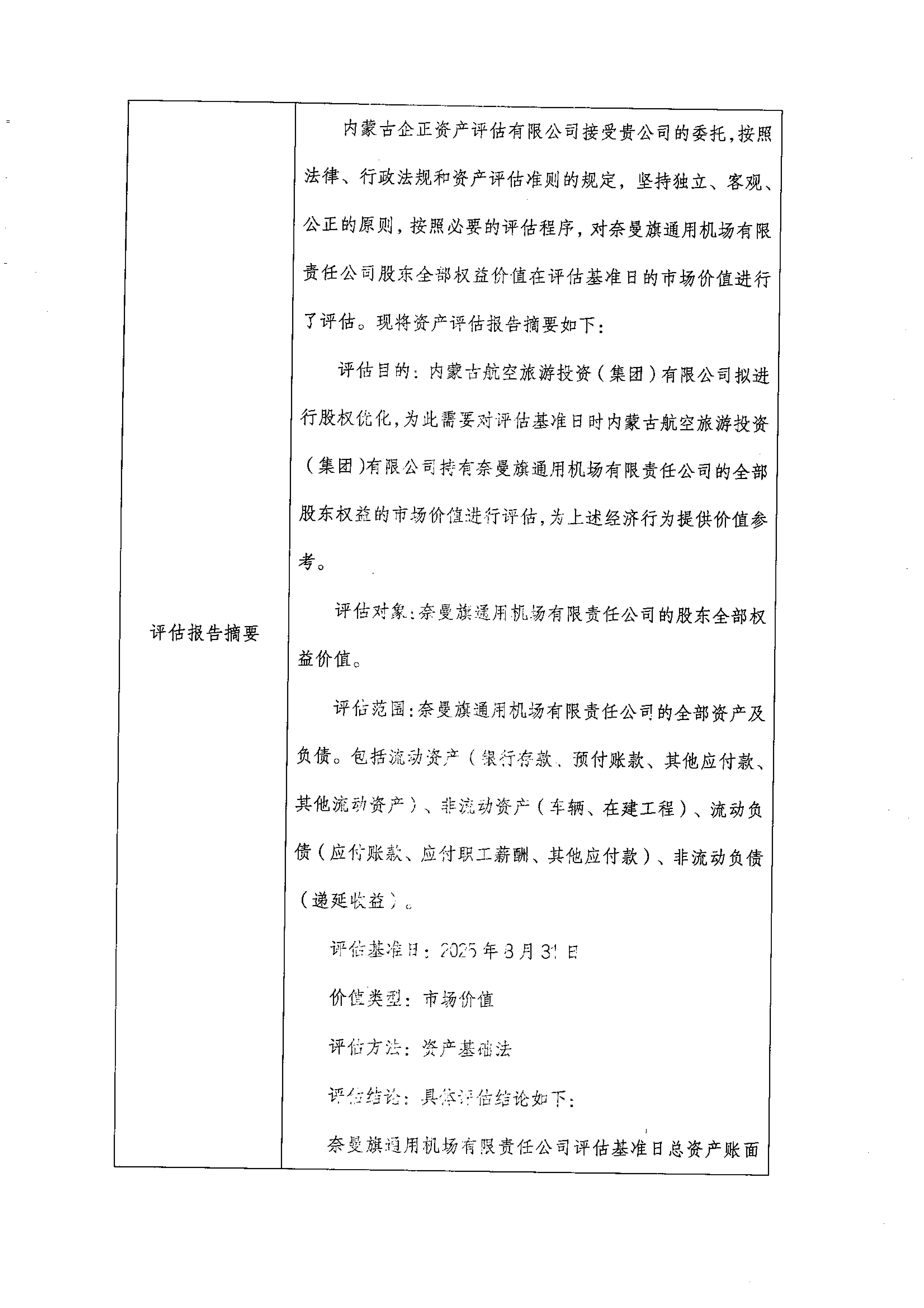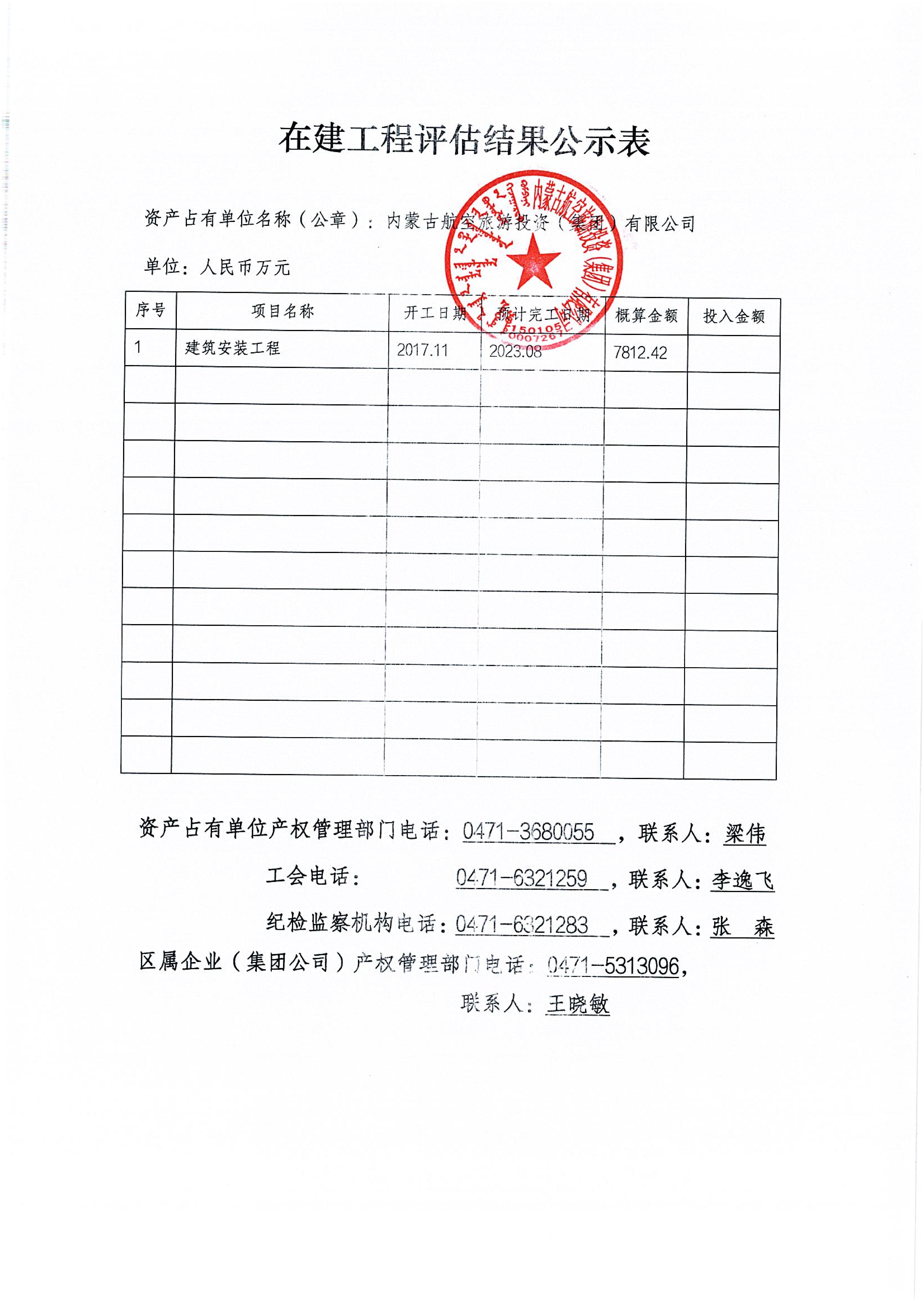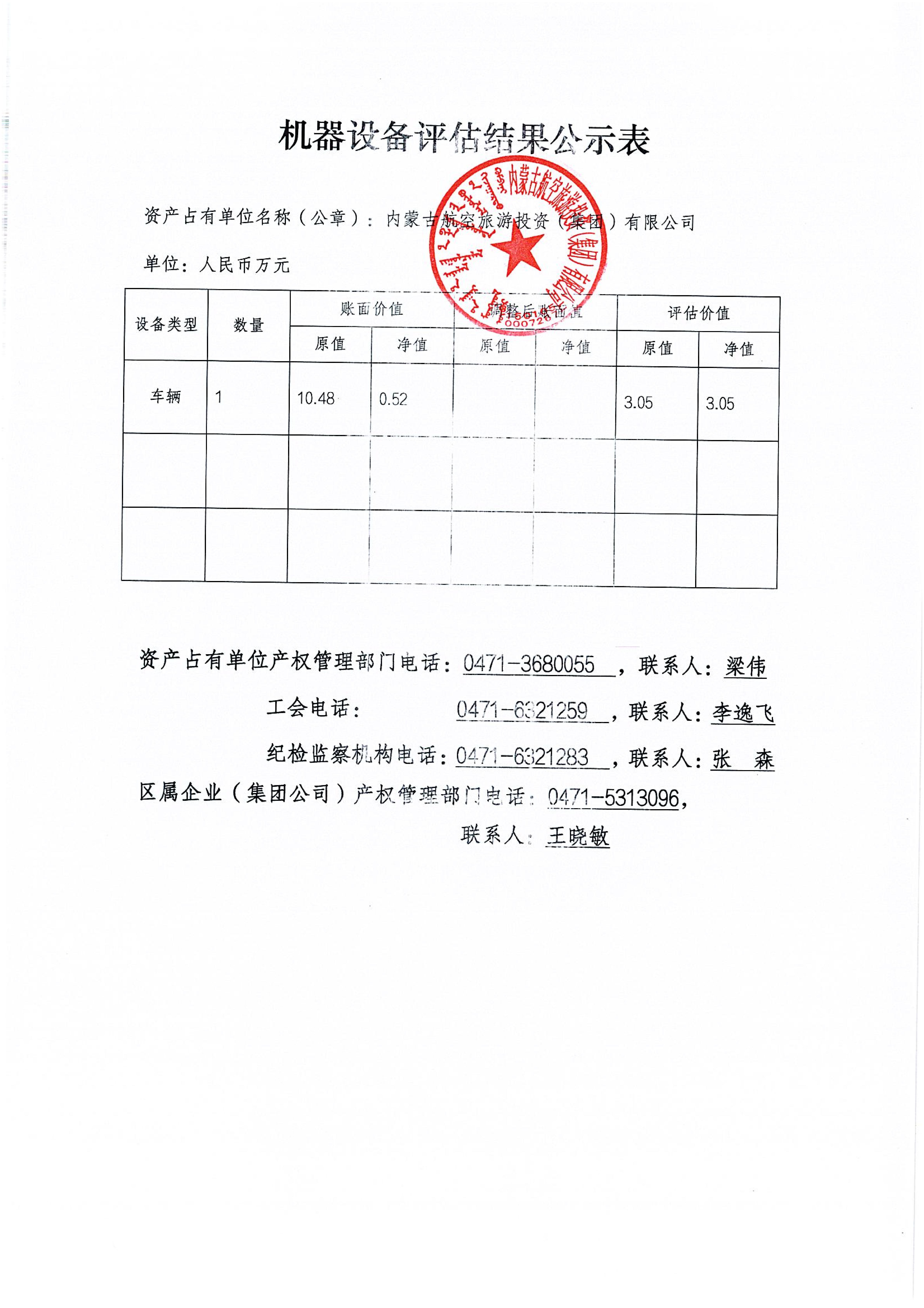 企业资产评估项目公示表